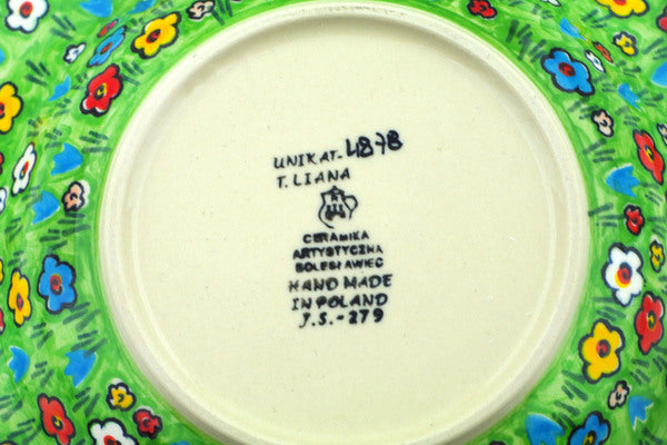 This Whimsical Garden 9" Pasta Bowl was handmade and hand decorated in Boleslawiec, Poland by skilled artisans according to old traditional methods. This is a Polish pottery Signature Unikat, which means that it has been hand painted with both sponges and brushes and it is signed by the artist who painted it. Unikat pieces are the most intricate works of art. Larger Unikat items take hours of very careful work to finish. This Polish stoneware is microwave, dishwasher, freezer, and oven safe up to 480°F. It does not contain lead or cadmium. It is part of the Whimsical Garden Collection.