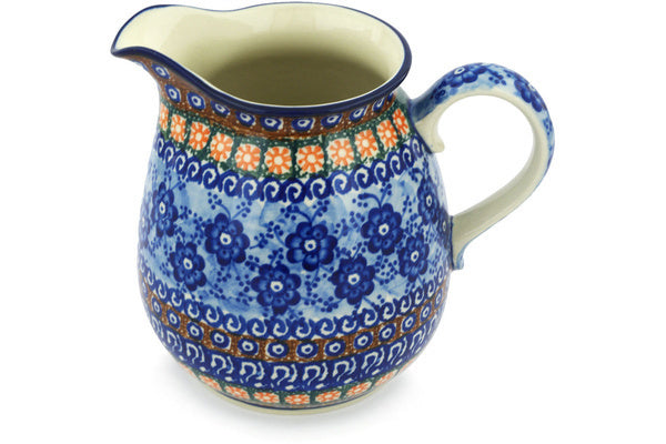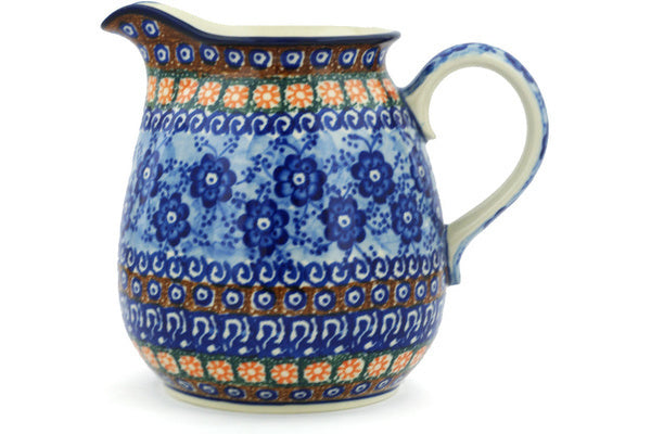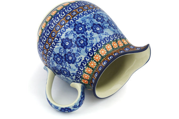 This Dancing Blue Poppies 6 Cup Pitcher was handmade and hand decorated in Boleslawiec, Poland by skilled artisans according to old traditional methods. This is a Polish pottery Signature Unikat, which means that it has been hand painted with both sponges and brushes and it is signed by the artist who painted it. Unikat pieces are the most intricate works of art. Larger Unikat items take hours of very careful work to finish. This Polish stoneware is microwave, dishwasher, freezer, and oven safe up to 480°F. It does not contain lead or cadmium. It is part of the Dancing Blue Poppies Collection.