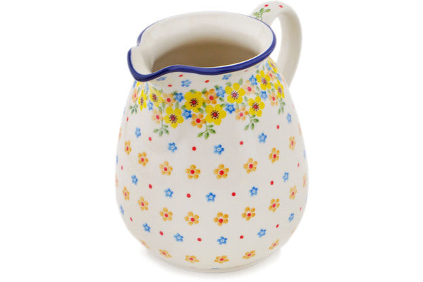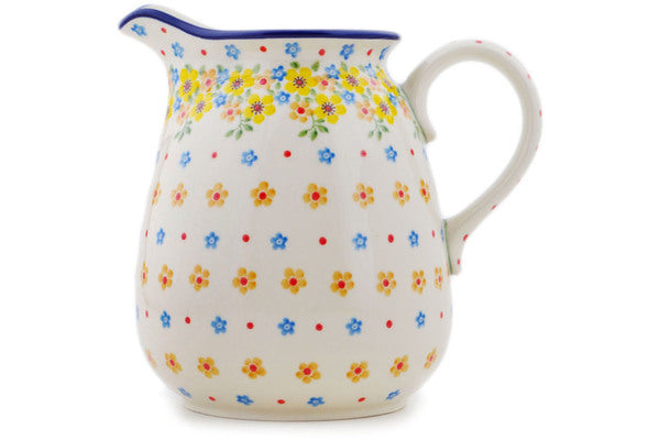 This Country Spring 67 oz Pitcher was handmade and hand decorated in Boleslawiec, Poland by skilled artisans according to old traditional methods. This Polish stoneware is microwave, dishwasher, freezer, and oven safe up to 480°F. It does not contain lead or cadmium. It is part of the Country Spring Collection.
