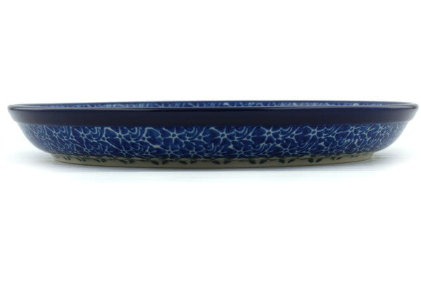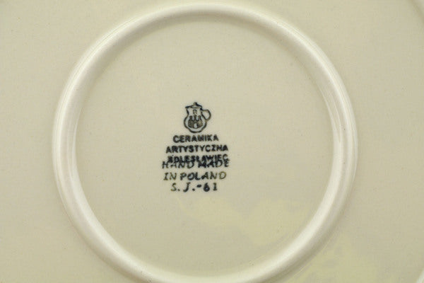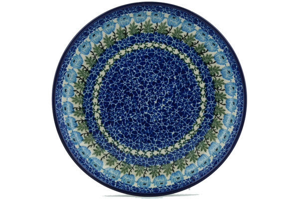 This Blue Rosette Wreath 9" Plate was handmade and hand decorated in Boleslawiec, Poland by skilled artisans according to old traditional methods. This Polish stoneware is microwave, dishwasher, freezer, and oven safe up to 480°F. It does not contain lead or cadmium. It is part of the Blue Rosette Wreath Collection.