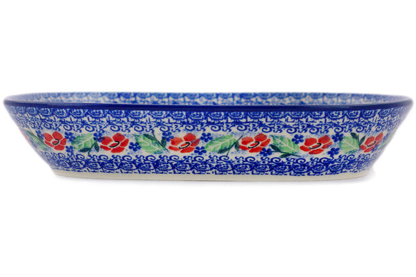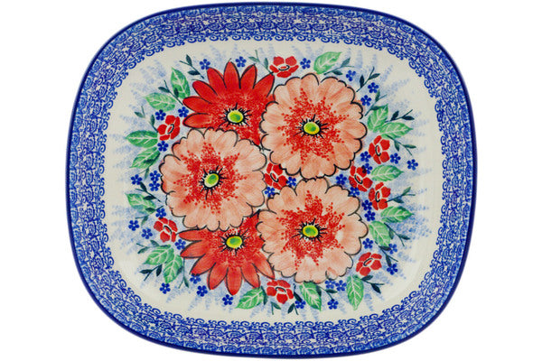 This Peak Of Perfection 10" Platter was handmade and hand decorated in Boleslawiec, Poland by skilled artisans according to old traditional methods. This is a Polish pottery Signature Unikat, which means that it has been hand painted with both sponges and brushes and it is signed by the artist who painted it. Unikat pieces are the most intricate works of art. Larger Unikat items take hours of very careful work to finish. This Polish stoneware is microwave, dishwasher, freezer, and oven safe up to 480°F. It does not contain lead or cadmium. It is part of the Peak Of Perfection Collection.