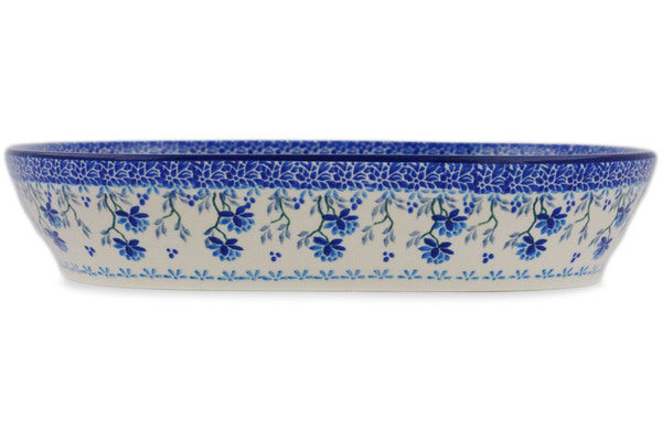 This Blue Grapevine 12" Platter was handmade and hand decorated in Boleslawiec, Poland by skilled artisans according to old traditional methods. This Polish stoneware is microwave, dishwasher, freezer, and oven safe up to 480°F. It does not contain lead or cadmium. It is part of the Blue Grapevine Collection.