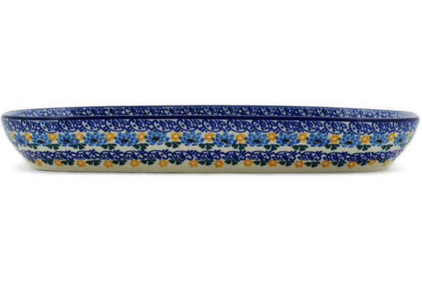 This Dream Bouquet 13" Platter was handmade and hand decorated in Boleslawiec, Poland by skilled artisans according to old traditional methods. This is a Polish pottery Signature Unikat, which means that it has been hand painted with both sponges and brushes and it is signed by the artist who painted it. Unikat pieces are the most intricate works of art. Larger Unikat items take hours of very careful work to finish. This Polish stoneware is microwave, dishwasher, freezer, and oven safe up to 480°F. It does not contain lead or cadmium. It is part of the Dream Bouquet Collection.
