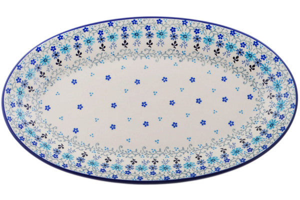 This Baby Blue Garden 15" Platter was handmade and hand decorated in Boleslawiec, Poland by skilled artisans according to old traditional methods. This Polish stoneware is microwave, dishwasher, freezer, and oven safe up to 480°F. It does not contain lead or cadmium. It is part of the Baby Blue Garden Collection.