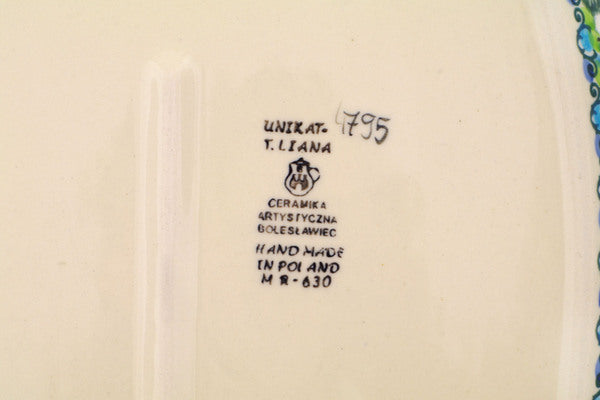 This White Pansies 15" Platter was handmade and hand decorated in Boleslawiec, Poland by skilled artisans according to old traditional methods. This is a Polish pottery Signature Unikat, which means that it has been hand painted with both sponges and brushes and it is signed by the artist who painted it. Unikat pieces are the most intricate works of art. Larger Unikat items take hours of very careful work to finish. This Polish stoneware is microwave, dishwasher, freezer, and oven safe up to 480°F. It does not contain lead or cadmium. It is part of the White Pansies Collection.