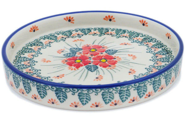 This Pink Forget Me Not 6" Platter was handmade and hand decorated in Boleslawiec, Poland by skilled artisans according to old traditional methods. This is a Polish pottery Signature Unikat, which means that it has been hand painted with both sponges and brushes and it is signed by the artist who painted it. Unikat pieces are the most intricate works of art. Larger Unikat items take hours of very careful work to finish. This Polish stoneware is microwave, dishwasher, freezer, and oven safe up to 480°F. It does not contain lead or cadmium. It is part of the Pink Forget Me Not Collection.