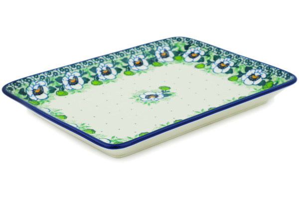 This Green Flora 9" Platter was handmade and hand decorated in Boleslawiec, Poland by skilled artisans according to old traditional methods. This Polish stoneware is microwave, dishwasher, freezer, and oven safe up to 480°F. It does not contain lead or cadmium. It is part of the Green Flora Collection.
