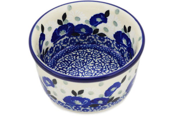 This Eternal Winter Small Ramekin Bowl was handmade and hand decorated in Boleslawiec, Poland by skilled artisans according to old traditional methods. This Polish stoneware is microwave, dishwasher, freezer, and oven safe up to 480°F. It does not contain lead or cadmium. It is part of the Eternal Winter Collection.