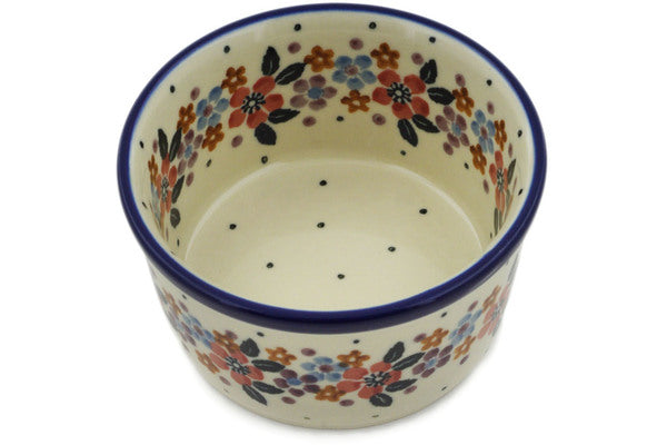 This Jewel Tones Small Ramekin Bowl was handmade and hand decorated in Boleslawiec, Poland by skilled artisans according to old traditional methods. This Polish stoneware is microwave, dishwasher, freezer, and oven safe up to 480°F. It does not contain lead or cadmium. It is part of the Jewel Tones Collection.