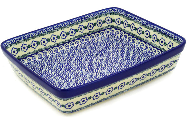 This White Daisy Dots 12" Rectangular Baker was handmade and hand decorated in Boleslawiec, Poland by skilled artisans according to old traditional methods. This Polish stoneware is microwave, dishwasher, freezer, and oven safe up to 480°F. It does not contain lead or cadmium. It is part of the White Daisy Dots Collection.