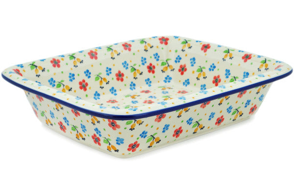 This Zesty Floral 12" Rectangular Baker was handmade and hand decorated in Boleslawiec, Poland by skilled artisans according to old traditional methods. This Polish stoneware is microwave, dishwasher, freezer, and oven safe up to 480°F. It does not contain lead or cadmium. It is part of the Zesty Floral Collection.