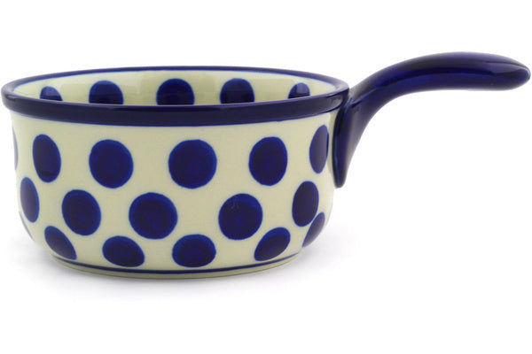 This Bold Blue Dots 10" Round Baker with Handles was handmade and hand decorated in Boleslawiec, Poland by skilled artisans according to old traditional methods. This Polish stoneware is microwave, dishwasher, freezer, and oven safe up to 480°F. It does not contain lead or cadmium. It is part of the Bold Blue Dots Collection.
