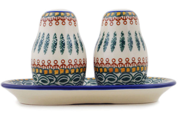This Tuscan Countryside 7" Salt and Pepper 3-Piece Set was handmade and hand decorated in Boleslawiec, Poland by skilled artisans according to old traditional methods. This Polish stoneware is microwave, dishwasher, freezer, and oven safe up to 480°F. It does not contain lead or cadmium. It is part of the Tuscan Countryside Collection.