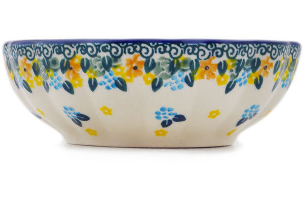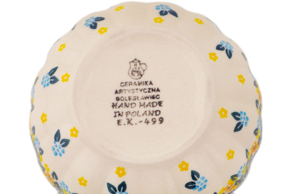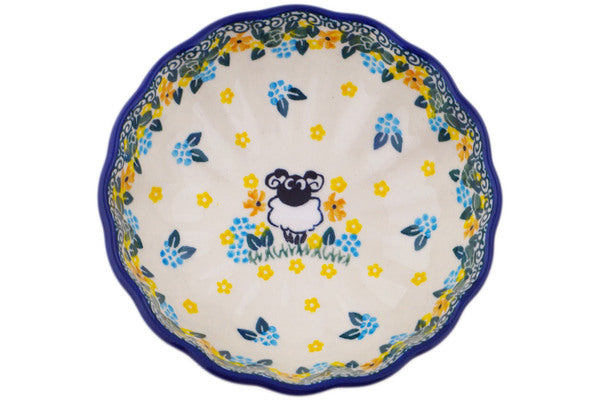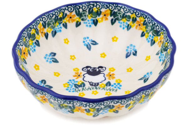 This Sheep In The Meadow 5" Scalloped Fluted Bowl was handmade and hand decorated in Boleslawiec, Poland by skilled artisans according to old traditional methods. This Polish stoneware is microwave, dishwasher, freezer, and oven safe up to 480°F. It does not contain lead or cadmium. It is part of the Sheep In The Meadow Collection.