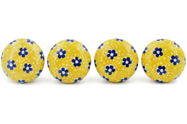 This Sunburst Daisies Set of 4 Drawer Pull Knobs 1-1/2 inch was handmade and hand decorated in Boleslawiec, Poland by skilled artisans according to old traditional methods. This Polish stoneware is microwave, dishwasher, freezer, and oven safe up to 480°F. It does not contain lead or cadmium. It is part of the Sunburst Daisies Collection.