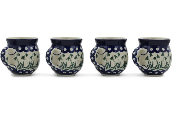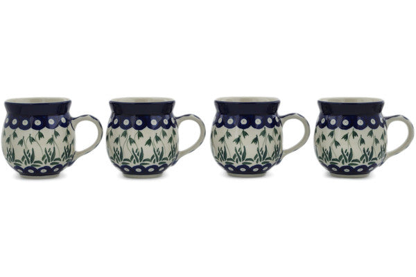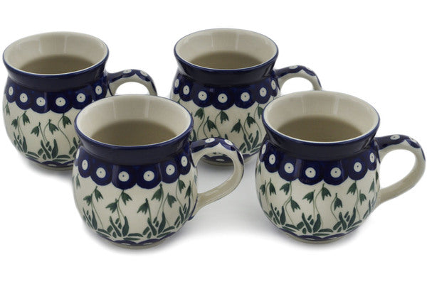 This Falling Tulips Set of Four 12 oz Bubble Mugs was handmade and hand decorated in Boleslawiec, Poland by skilled artisans according to old traditional methods. This Polish stoneware is microwave, dishwasher, freezer, and oven safe up to 480°F. It does not contain lead or cadmium. It is part of the Falling Tulips Collection.