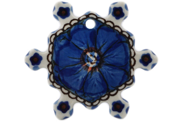 This Cobalt Poppies 3" Snowflake Pendant was handmade and hand decorated in Boleslawiec, Poland by skilled artisans according to old traditional methods. This is a Polish pottery Signature Unikat, which means that it has been hand painted with both sponges and brushes and it is signed by the artist who painted it. Unikat pieces are the most intricate works of art. Larger Unikat items take hours of very careful work to finish. This Polish stoneware is microwave, dishwasher, freezer, and oven safe up to 480°F. It does not contain lead or cadmium. It is part of the Cobalt Poppies Collection.