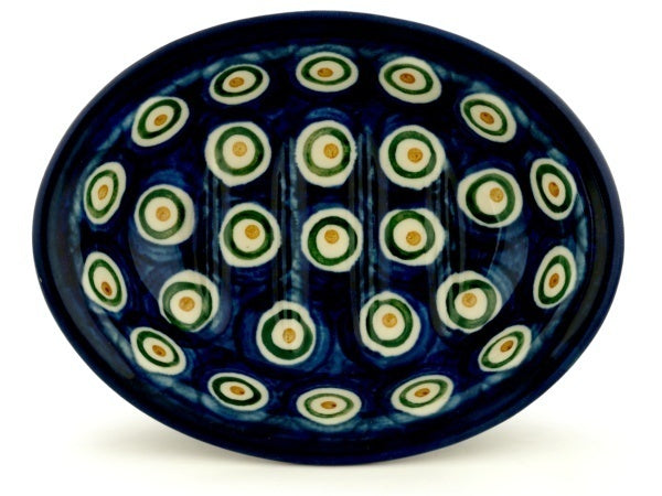 This Peacock Leaves 5" Soap Dish was handmade and hand decorated in Boleslawiec, Poland by skilled artisans according to old traditional methods. This Polish stoneware is microwave, dishwasher, freezer, and oven safe up to 480°F. It does not contain lead or cadmium. It is part of the Peacock Leaves Collection.