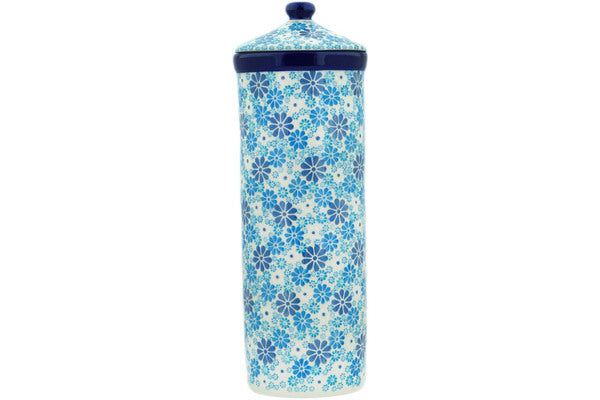 This Floating Flowers 14" spaghetti container was handmade and hand decorated in Boleslawiec, Poland by skilled artisans according to old traditional methods. This is a Polish pottery Signature Unikat, which means that it has been hand painted with both sponges and brushes and it is signed by the artist who painted it. Unikat pieces are the most intricate works of art. Larger Unikat items take hours of very careful work to finish. This Polish stoneware is microwave, dishwasher, freezer, and oven safe up to 480°F. It does not contain lead or cadmium. It is part of the Floating Flowers Collection.
