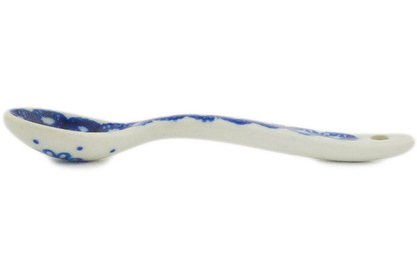 This Blue Daisy Chain 4" Spoon was handmade and hand decorated in Boleslawiec, Poland by skilled artisans according to old traditional methods. This Polish stoneware is microwave, dishwasher, freezer, and oven safe up to 480°F. It does not contain lead or cadmium. It is part of the Blue Daisy Chain Collection.