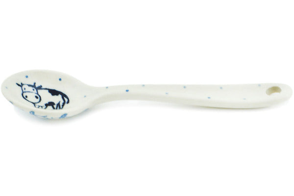 This Happy Cows 5" Sugar Spoon was handmade and hand decorated in Boleslawiec, Poland by skilled artisans according to old traditional methods. This Polish stoneware is microwave, dishwasher, freezer, and oven safe up to 480°F. It does not contain lead or cadmium. It is part of the Happy Cows Collection.