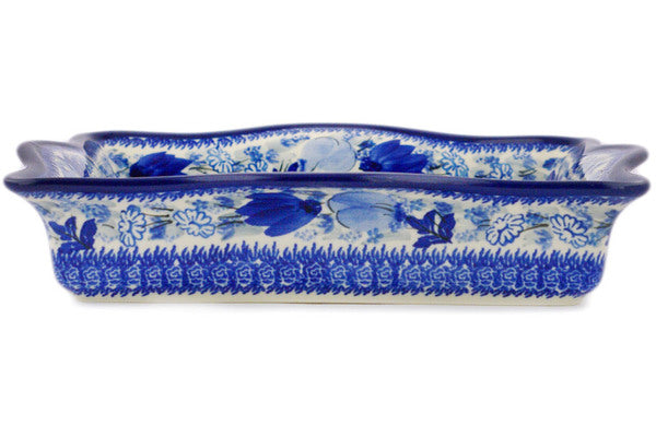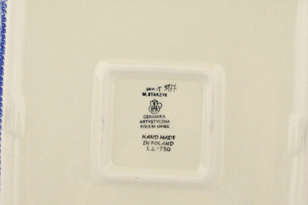 This Blue Wildflower Patch 12" Square Bowl was handmade and hand decorated in Boleslawiec, Poland by skilled artisans according to old traditional methods. This is a Polish pottery Signature Unikat, which means that it has been hand painted with both sponges and brushes and it is signed by the artist who painted it. Unikat pieces are the most intricate works of art. Larger Unikat items take hours of very careful work to finish. This Polish stoneware is microwave, dishwasher, freezer, and oven safe up to 480°F. It does not contain lead or cadmium. It is part of the Blue Wildflower Patch Collection.
