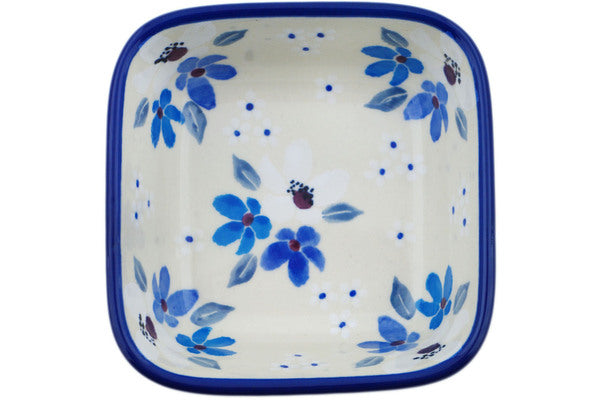 This Bunches Of Beauty 4" Square Bowl was handmade and hand decorated in Boleslawiec, Poland by skilled artisans according to old traditional methods. This is a Polish pottery Signature Unikat, which means that it has been hand painted with both sponges and brushes and it is signed by the artist who painted it. Unikat pieces are the most intricate works of art. Larger Unikat items take hours of very careful work to finish. This Polish stoneware is microwave, dishwasher, freezer, and oven safe up to 480°F. It does not contain lead or cadmium. It is part of the Bunches Of Beauty Collection.