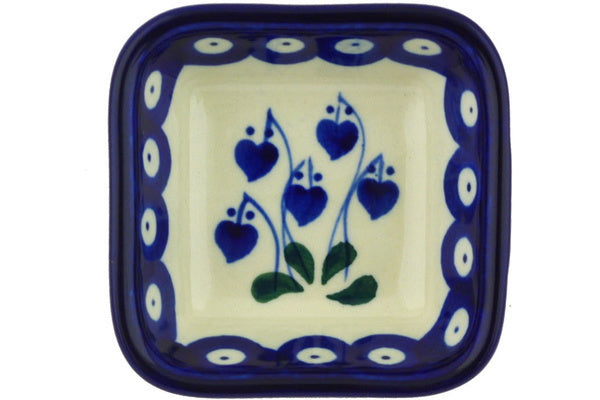 This Bleeding Heart Peacock Small Square Bowl was handmade and hand decorated in Boleslawiec, Poland by skilled artisans according to old traditional methods. This Polish stoneware is microwave, dishwasher, freezer, and oven safe up to 480°F. It does not contain lead or cadmium. It is part of the Bleeding Heart Peacock Collection.