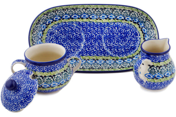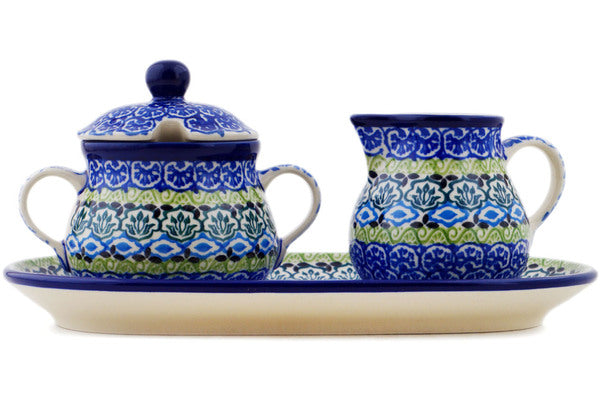 This Artistic Boho 10" Sugar and Creamer Set was handmade and hand decorated in Boleslawiec, Poland by skilled artisans according to old traditional methods. This Polish stoneware is microwave, dishwasher, freezer, and oven safe up to 480°F. It does not contain lead or cadmium. It is part of the Artistic Boho Collection.