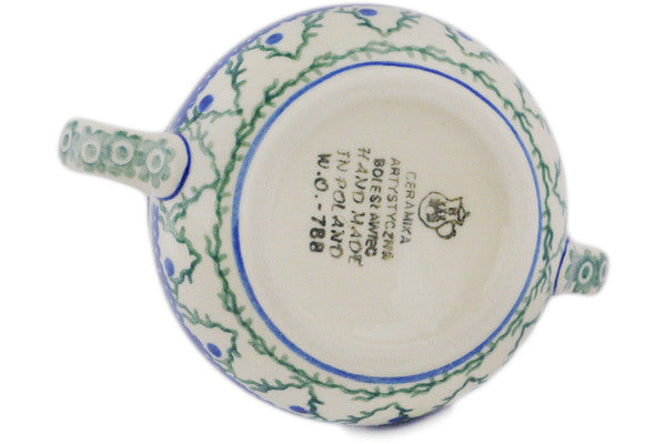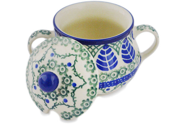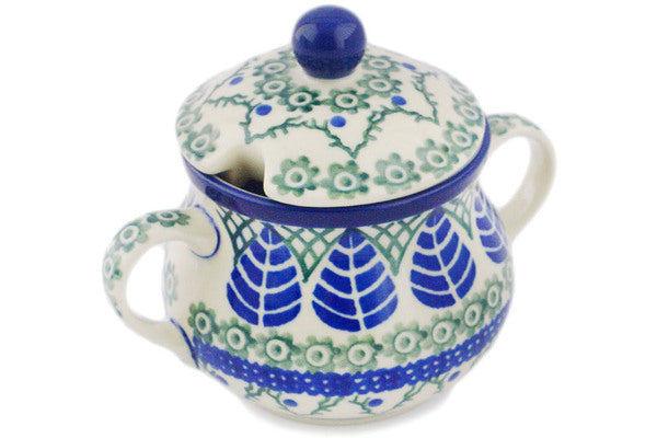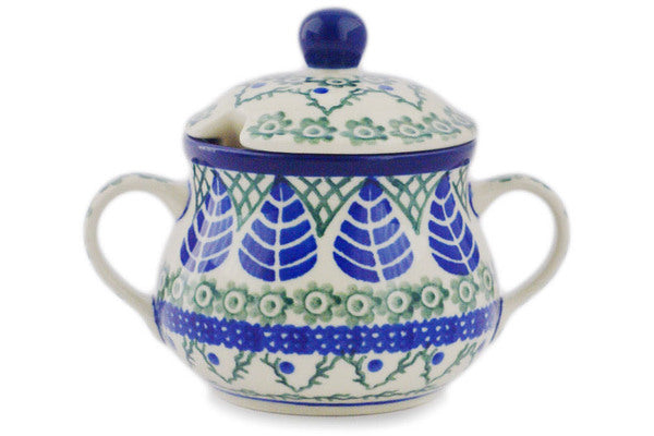 This Blue Alpine 7 oz Sugar Bowl was handmade and hand decorated in Boleslawiec, Poland by skilled artisans according to old traditional methods. This Polish stoneware is microwave, dishwasher, freezer, and oven safe up to 480°F. It does not contain lead or cadmium. It is part of the Blue Alpine Collection.