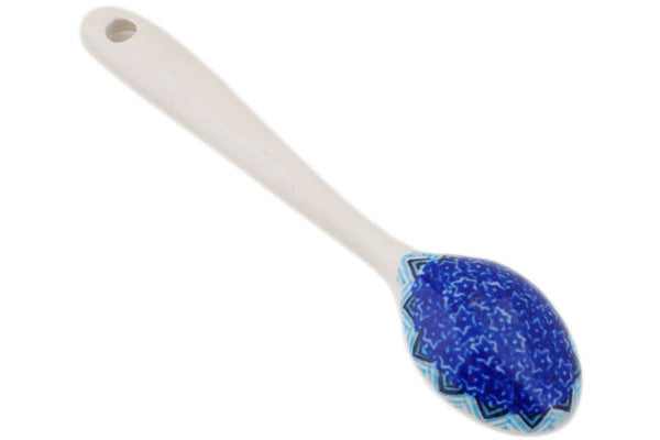 This Aztec Dream 5" Sugar Spoon was handmade and hand decorated in Boleslawiec, Poland by skilled artisans according to old traditional methods. This Polish stoneware is microwave, dishwasher, freezer, and oven safe up to 480°F. It does not contain lead or cadmium. It is part of the Aztec Dream Collection.