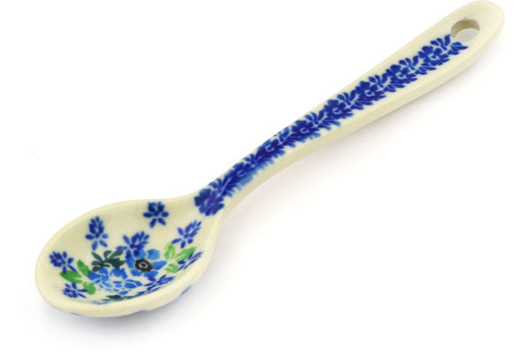 This Blue Spring Wreath 5" Sugar Spoon was handmade and hand decorated in Boleslawiec, Poland by skilled artisans according to old traditional methods. This Polish stoneware is microwave, dishwasher, freezer, and oven safe up to 480°F. It does not contain lead or cadmium. It is part of the Blue Spring Wreath Collection.