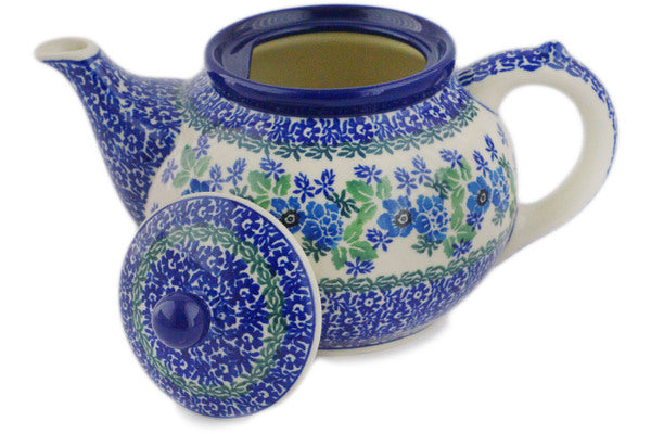 This Pretty In Blue 13 oz Tea or Coffee Pot was handmade and hand decorated in Boleslawiec, Poland by skilled artisans according to old traditional methods. This Polish stoneware is microwave, dishwasher, freezer, and oven safe up to 480°F. It does not contain lead or cadmium. It is part of the Pretty In Blue Collection.