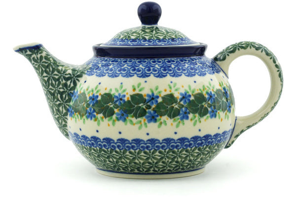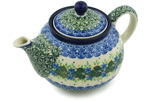 This Aster Wreath 3½ cups Tea or Coffee Pot was handmade and hand decorated in Boleslawiec, Poland by skilled artisans according to old traditional methods. This Polish stoneware is microwave, dishwasher, freezer, and oven safe up to 480°F. It does not contain lead or cadmium. It is part of the Aster Wreath Collection.