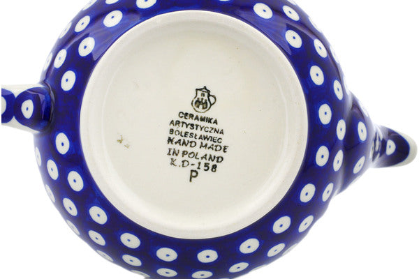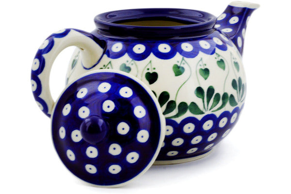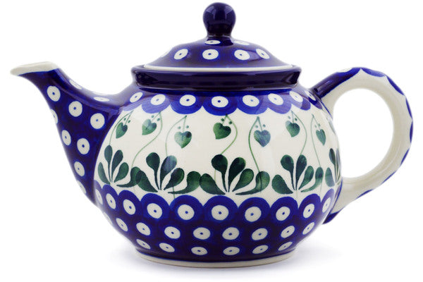 This Bleeding Heart Peacock 3½ cups Tea or Coffee Pot was handmade and hand decorated in Boleslawiec, Poland by skilled artisans according to old traditional methods. This Polish stoneware is microwave, dishwasher, freezer, and oven safe up to 480°F. It does not contain lead or cadmium. It is part of the Bleeding Heart Peacock Collection.