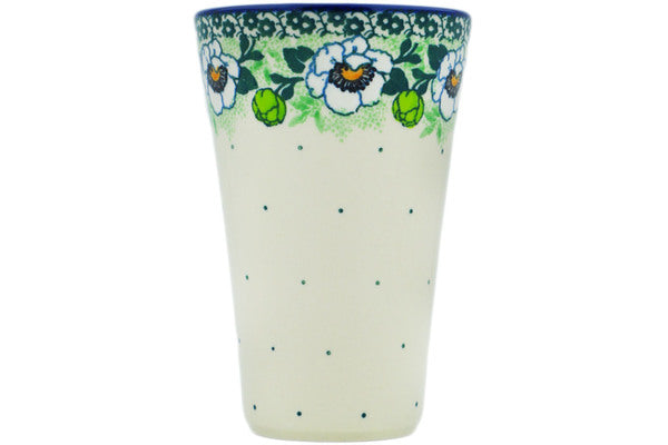 This Green Flora 12 oz Tumbler was handmade and hand decorated in Boleslawiec, Poland by skilled artisans according to old traditional methods. This Polish stoneware is microwave, dishwasher, freezer, and oven safe up to 480°F. It does not contain lead or cadmium. It is part of the Green Flora Collection.