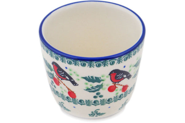 This Holly Robin 6 oz Tumbler was handmade and hand decorated in Boleslawiec, Poland by skilled artisans according to old traditional methods. This Polish stoneware is microwave, dishwasher, freezer, and oven safe up to 480°F. It does not contain lead or cadmium. It is part of the Holly Robin Collection.