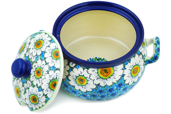 This Pansies And Daisies 122 oz Tureen was handmade and hand decorated in Boleslawiec, Poland by skilled artisans according to old traditional methods. This is a Polish pottery Signature Unikat, which means that it has been hand painted with both sponges and brushes and it is signed by the artist who painted it. Unikat pieces are the most intricate works of art. Larger Unikat items take hours of very careful work to finish. This Polish stoneware is microwave, dishwasher, freezer, and oven safe up to 480°F. It does not contain lead or cadmium. It is part of the Pansies And Daisies Collection.