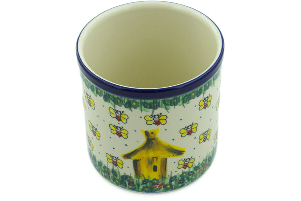 This Bee Happy 6" Utensil Jar was handmade and hand decorated in Boleslawiec, Poland by skilled artisans according to old traditional methods. This is a Polish pottery Signature Unikat, which means that it has been hand painted with both sponges and brushes and it is signed by the artist who painted it. Unikat pieces are the most intricate works of art. Larger Unikat items take hours of very careful work to finish. This Polish stoneware is microwave, dishwasher, freezer, and oven safe up to 480°F. It does not contain lead or cadmium. It is part of the Bee Happy Collection.