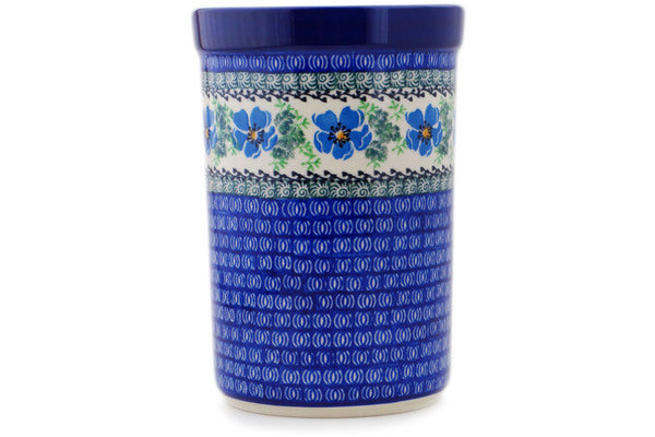 This Scarlet Pimpernel Flower 8" Utensil Jar was handmade and hand decorated in Boleslawiec, Poland by skilled artisans according to old traditional methods. This Polish stoneware is microwave, dishwasher, freezer, and oven safe up to 480°F. It does not contain lead or cadmium. It is part of the Scarlet Pimpernel Flower Collection.