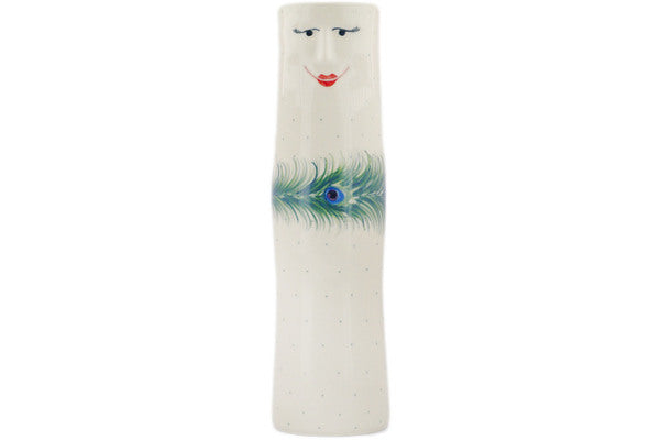 This Green Fascination Peacock 12" Vase was handmade and hand decorated in Boleslawiec, Poland by skilled artisans according to old traditional methods. This Polish stoneware is microwave, dishwasher, freezer, and oven safe up to 480°F. It does not contain lead or cadmium. It is part of the Green Fascination Peacock Collection.