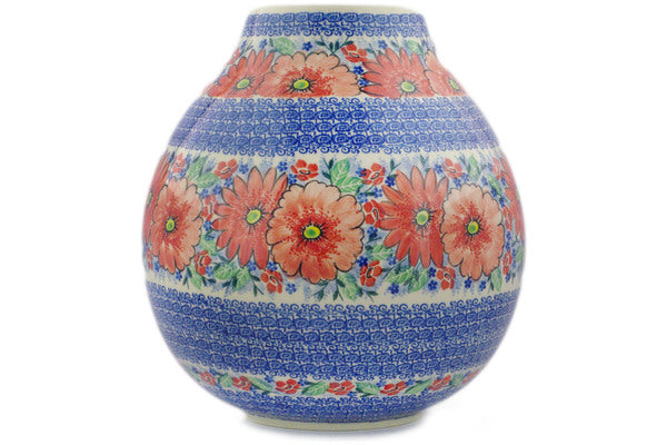This Peak Of Perfection 12" Vase was handmade and hand decorated in Boleslawiec, Poland by skilled artisans according to old traditional methods. This is a Polish pottery Signature Unikat, which means that it has been hand painted with both sponges and brushes and it is signed by the artist who painted it. Unikat pieces are the most intricate works of art. Larger Unikat items take hours of very careful work to finish. This Polish stoneware is microwave, dishwasher, freezer, and oven safe up to 480°F. It does not contain lead or cadmium. It is part of the Peak Of Perfection Collection.