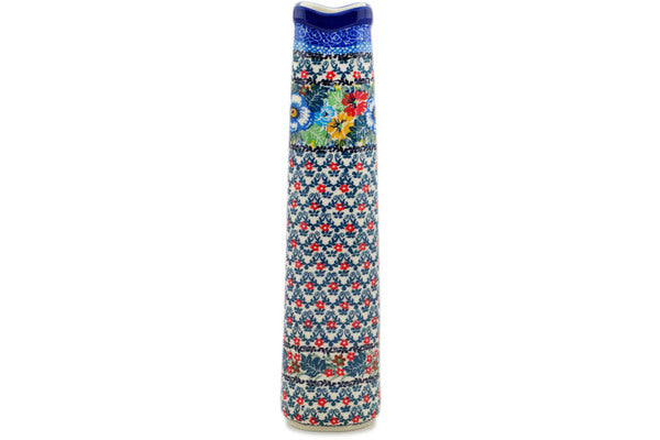 This Delightful Motif 13" Vase was handmade and hand decorated in Boleslawiec, Poland by skilled artisans according to old traditional methods. This is a Polish pottery Signature Unikat, which means that it has been hand painted with both sponges and brushes and it is signed by the artist who painted it. Unikat pieces are the most intricate works of art. Larger Unikat items take hours of very careful work to finish. This Polish stoneware is microwave, dishwasher, freezer, and oven safe up to 480°F. It does not contain lead or cadmium. It is part of the Delightful Motif Collection.