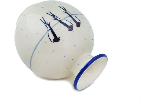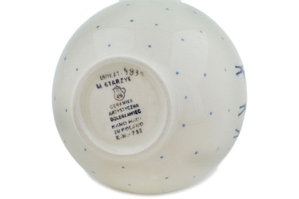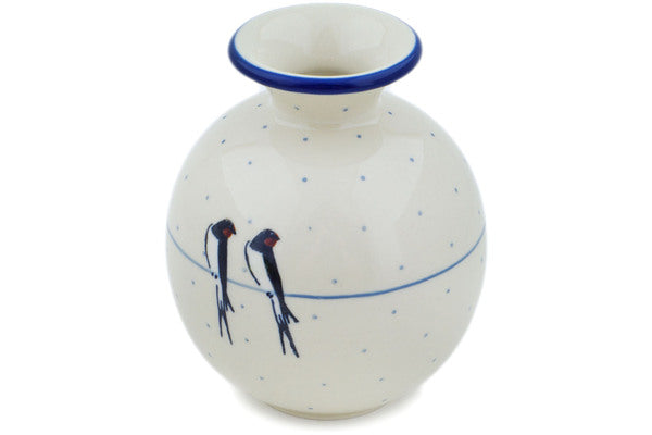 This Waiting 5" Vase was handmade and hand decorated in Boleslawiec, Poland by skilled artisans according to old traditional methods. This is a Polish pottery Signature Unikat, which means that it has been hand painted with both sponges and brushes and it is signed by the artist who painted it. Unikat pieces are the most intricate works of art. Larger Unikat items take hours of very careful work to finish. This Polish stoneware is microwave, dishwasher, freezer, and oven safe up to 480°F. It does not contain lead or cadmium. It is part of the Waiting Collection.