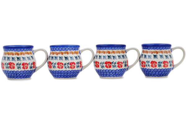 This Red Cornflower 4 Bubble Mugs was handmade and hand decorated in Boleslawiec, Poland by skilled artisans according to old traditional methods. This Polish stoneware is microwave, dishwasher, freezer, and oven safe up to 480°F. It does not contain lead or cadmium. It is part of the Red Cornflower Collection.