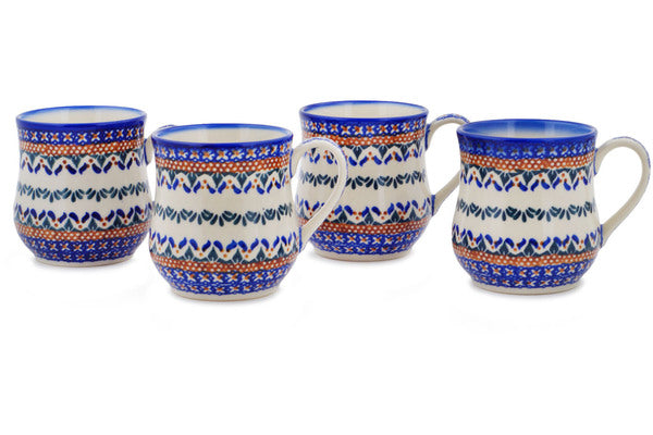 This Blue Cress 4 Mugs was handmade and hand decorated in Boleslawiec, Poland by skilled artisans according to old traditional methods. This is a Polish pottery Signature Unikat, which means that it has been hand painted with both sponges and brushes and it is signed by the artist who painted it. Unikat pieces are the most intricate works of art. Larger Unikat items take hours of very careful work to finish. This Polish stoneware is microwave, dishwasher, freezer, and oven safe up to 480°F. It does not contain lead or cadmium. It is part of the Blue Cress Collection.