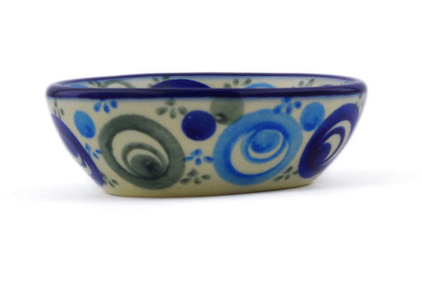 This Blue Peacock Eye 3" Bowl was handmade and hand decorated in Boleslawiec, Poland by skilled artisans according to old traditional methods. This Polish stoneware is microwave, dishwasher, freezer, and oven safe up to 480°F. It does not contain lead or cadmium. It is part of the Blue Peacock Eye Collection.