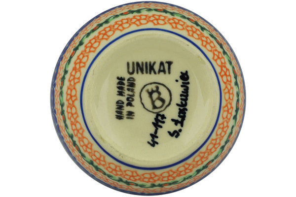 This Bold Poppies 4" Bowl was handmade and hand decorated in Boleslawiec, Poland by skilled artisans according to old traditional methods. This is a Polish pottery Signature Unikat, which means that it has been hand painted with both sponges and brushes and it is signed by the artist who painted it. Unikat pieces are the most intricate works of art. Larger Unikat items take hours of very careful work to finish. This Polish stoneware is microwave, dishwasher, freezer, and oven safe up to 480°F. It does not contain lead or cadmium. It is part of the Bold Poppies Collection.