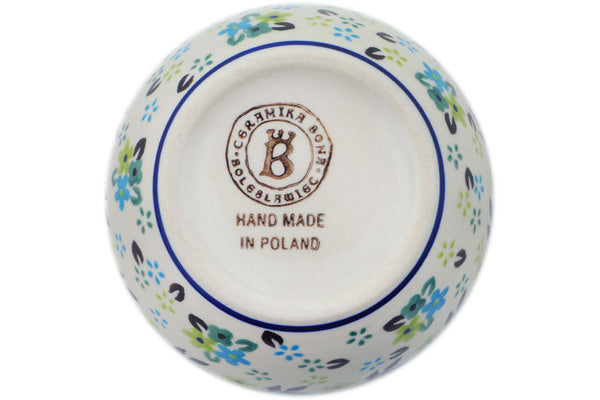 This Mellow Meadow 4" Bowl was handmade and hand decorated in Boleslawiec, Poland by skilled artisans according to old traditional methods. This is a Polish pottery Signature Unikat, which means that it has been hand painted with both sponges and brushes and it is signed by the artist who painted it. Unikat pieces are the most intricate works of art. Larger Unikat items take hours of very careful work to finish. This Polish stoneware is microwave, dishwasher, freezer, and oven safe up to 480°F. It does not contain lead or cadmium. It is part of the Mellow Meadow Collection.