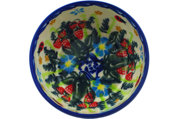 This Spring Garden Berries 4" Bowl was handmade and hand decorated in Boleslawiec, Poland by skilled artisans according to old traditional methods. This is a Polish pottery Signature Unikat, which means that it has been hand painted with both sponges and brushes and it is signed by the artist who painted it. Unikat pieces are the most intricate works of art. Larger Unikat items take hours of very careful work to finish. This Polish stoneware is microwave, dishwasher, freezer, and oven safe up to 480°F. It does not contain lead or cadmium. It is part of the Spring Garden Berries Collection.